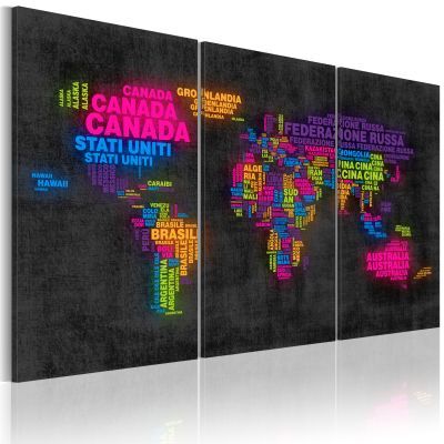 Wysokiej jakości obraz "Mapa świata - nazwy państw w języku włoskim - tryptyk" drukujemy na prawdziwym...