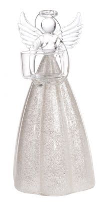 SZKLANY ŚWIECZNIK ANIOŁEK W BROKATOWEJ SPÓDNICY DUŻY