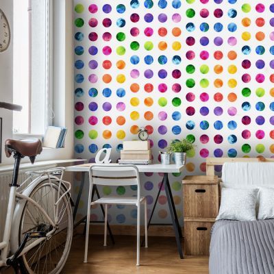 Trwała, odporna na wodę i zarysowania flizelinowa fototapeta "Kolorowe kropki" do przyklejenia na ścianie. Fototapeta Kolorowe kropki z inspirującym motywem będzie efektowną ozdobą każdego pomieszczenia. Tapety Flizelinowe montowane są na klej. Można ją zamontować w każdym...