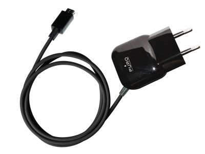 Firmowa ładowarka sieciowa ze zintegrowanym kablem Micro USB do telefonów Samsung, Nokia, HTC, Blackberry, LG, Motorola oraz Sony Ericsson. Ładowarka jest wystarczająco mała, aby nosić ją zawsze przy sobie lub zabierać w podróż. Napięcie wyjściowe: 5 V, 1A.