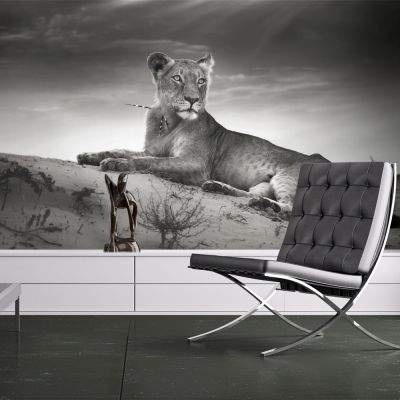Strona głównaZwierzętaFototapeta - Lwica w czerni i bieli