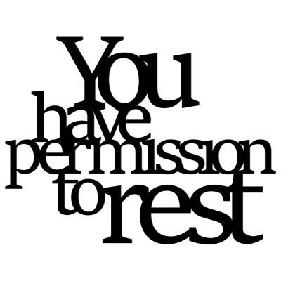 Dekoracyjny napis na ścianę "YOU HAVE PERMISSION TO REST" - tłumaczenie: "Masz zgodę na odpoczynek". Oznacza tyle, że sam sobie musisz dać zgodę na to by odpocząć...